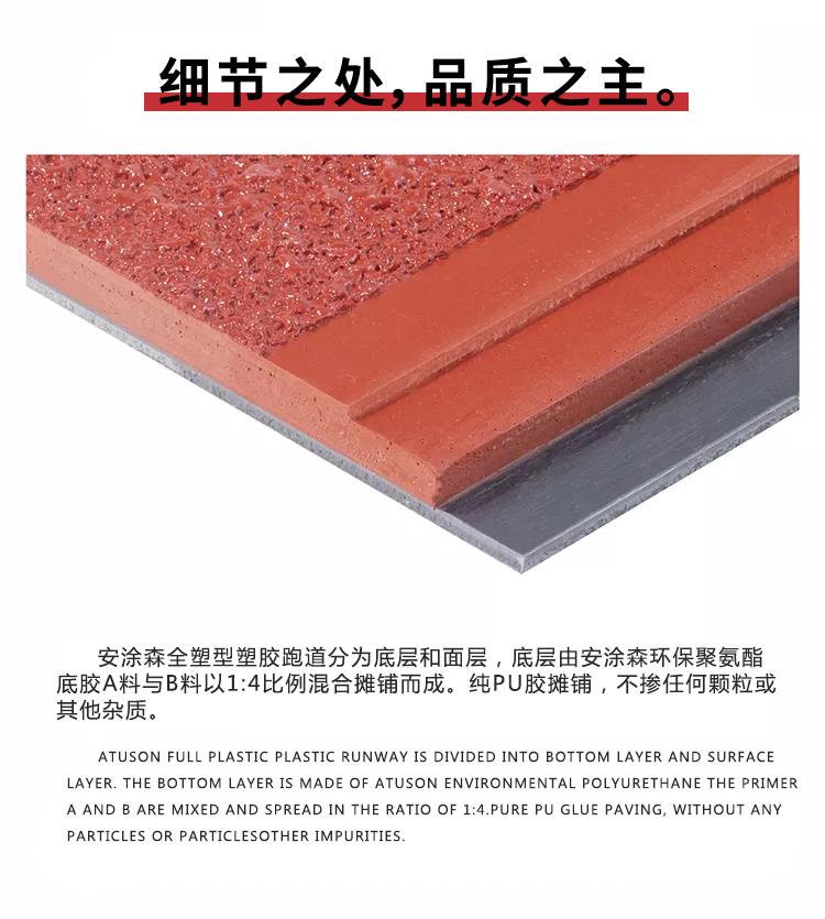 安涂森品牌,产品质量有保障 材料安全、使用安全、生产安全、服务安全、施工安全。节能环保均为国内领先;高安全、高粘接、高环保、高耐磨、高耐用、高阻烧,场地使用寿命8年以上。